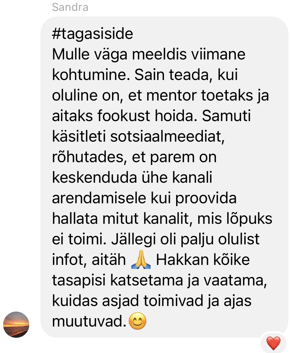 - Personaalne tagasiside kursuse jooksul (hindamatu)